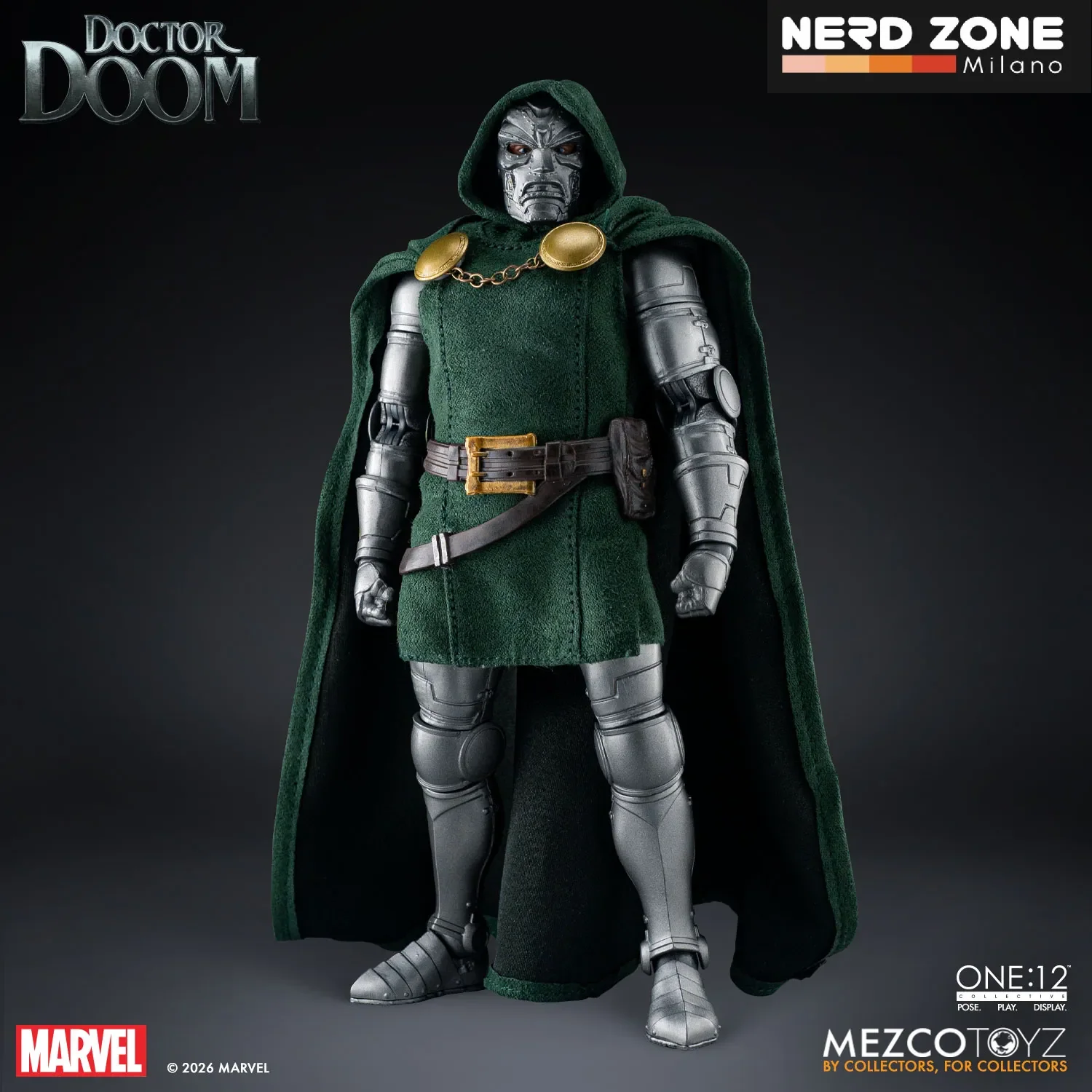 Doctor Doom entra nella serie One:12 Collective di Mezco! Il Dr Doom indossa una tunica removibile e un'armatura con parti in metallo. La figura è iper accessoriata: nella scatola troverete teste, volti e mani intercambiabili, armi, parti per gli effetti, stand display, libro e il Cosmic Power Siphon Harness con luci led! Da non perdere!