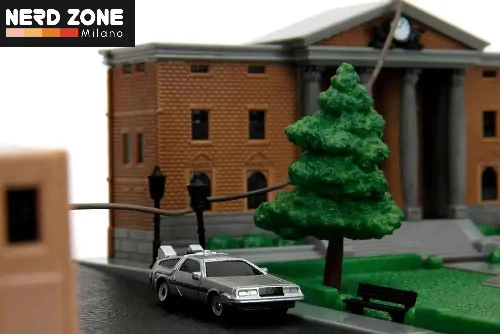 Il diorama è in scala 1:64 e contiene due veicoli in metallo pressofuso: il Toyota SR5 Pickup del 1985 e, soprattutto, l'iconica DeLorean.